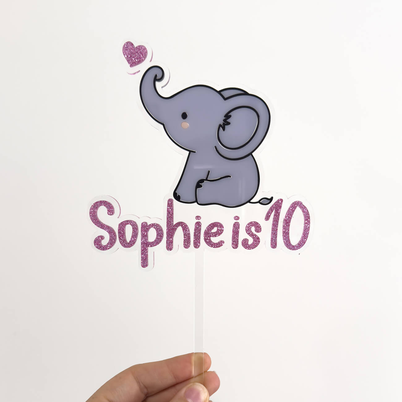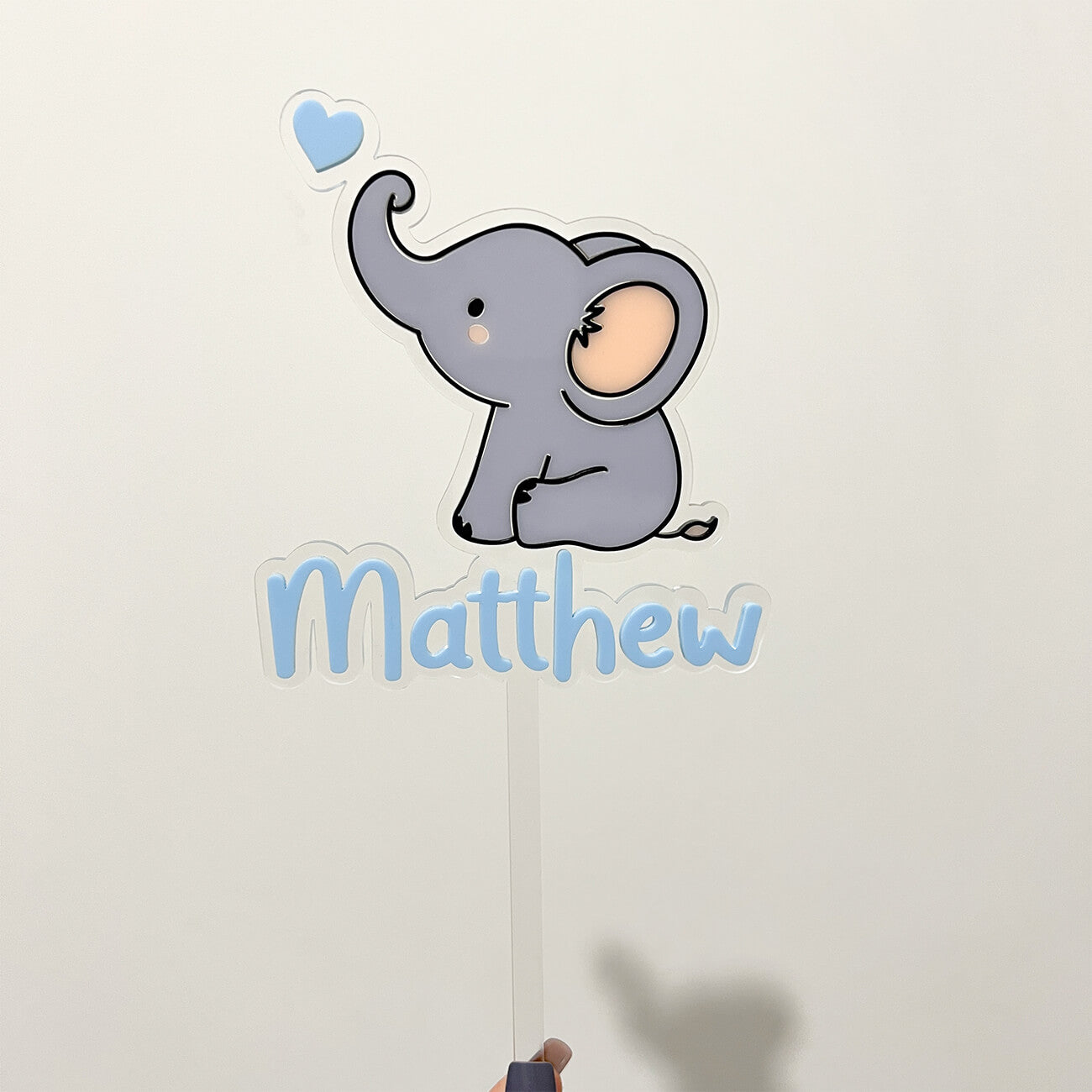 Our baby elephant cake topper is created with layers of coloured acrylic on a clear acrylic backing to create a floating effect, perfect for baby showers or birthday parties.