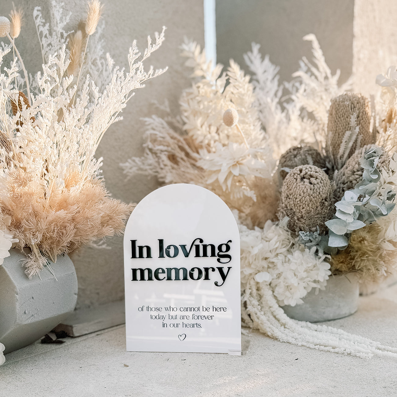 Celebrate your special day while honouring those who are forever in your hearts with our Acrylic In Loving Memory Sign. This charming piece is a beautiful way to remember loved ones who can't be there in person, but are always with you in spirit.