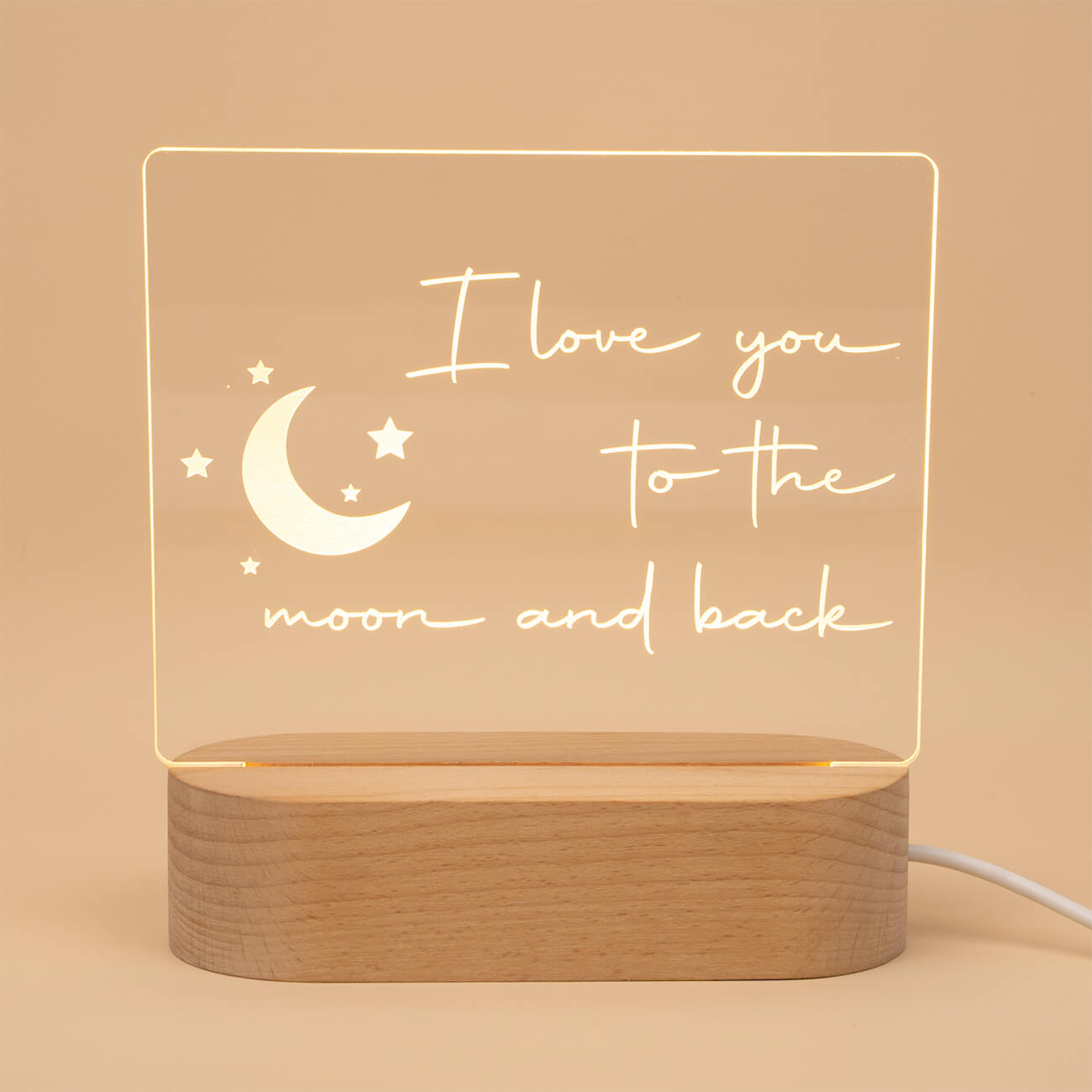 Our acrylic night lights are the perfect addition to your little ones room for bed time and sleeping.